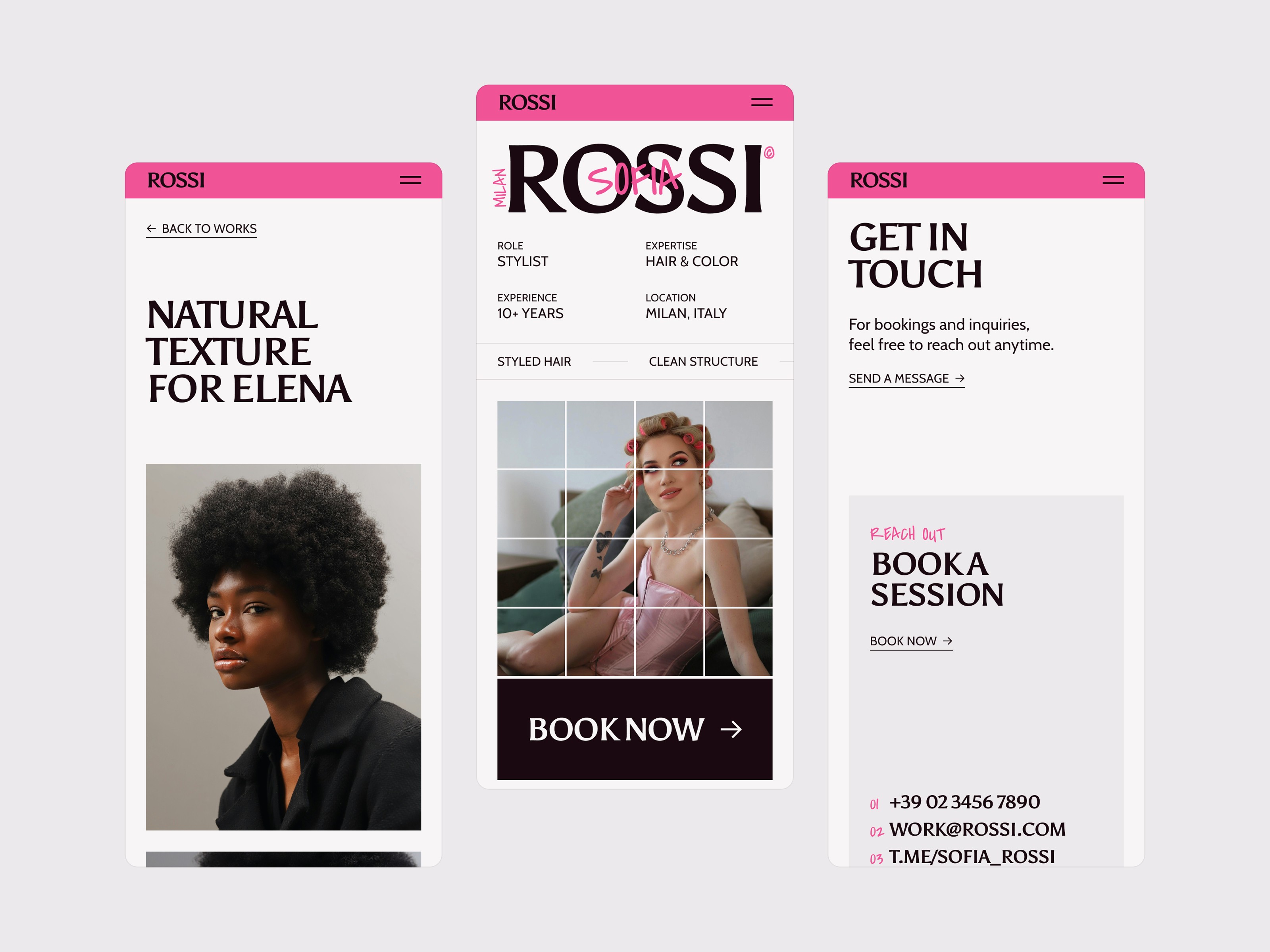 Rossi is a modern, elegant website crafted for hairstylists and salons who want a polished, high-end online presence. With clean, image-focused layouts and an editorial-inspired design, it helps you showcase your work in a visually striking way, build trust with potential clients, and create a strong first impression. Thoughtfully structured sections guide visitors naturally through your content and lead them seamlessly toward booking.
