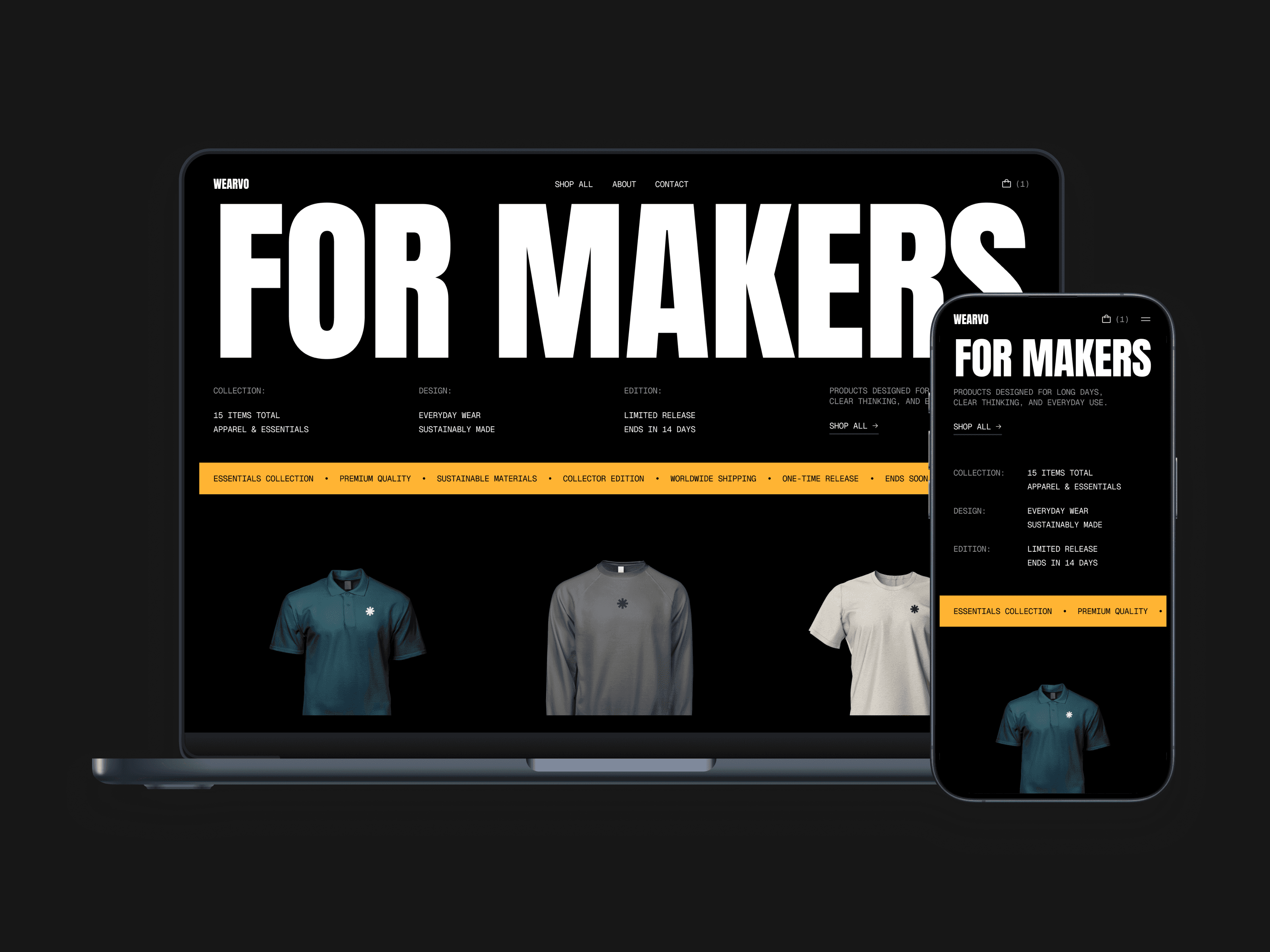 The website is designed to highlight products through clean layouts, clear hierarchy, and a predictable shopping flow from discovery to checkout. With a minimal interface, thoughtful structure, and easy customization, Wearvo adapts to different brands and collections while staying simple, focused, and ready to scale from day one.